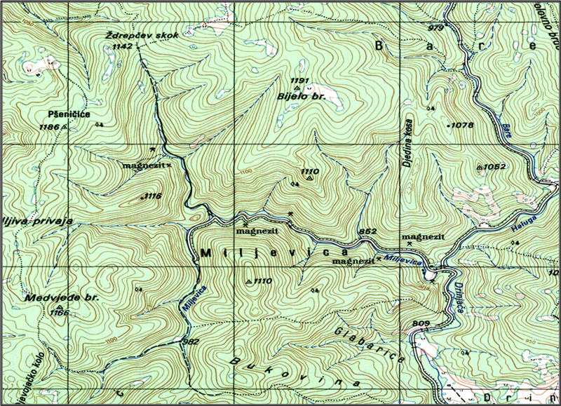 - Rudni revir rude magnezita Drinjača.