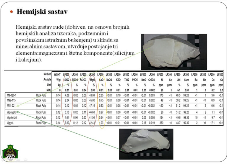 Kvalitetna ruda magnezita situirana je na jugoistočnom dijelu planine Konjuh gdje se ležište magnezita koncentrisalo u tri rudna revira i to: