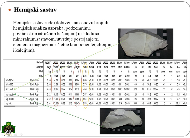 Jedino zasad otvoreno i okontureno ležište magnezita u BiH nalazi se 17 km od magistralnog puta Sarajevo-Tuzla kod Kladnja. Prije rata u ovom rudniku godišnje se proizvodilo cca 36.000 tona sirovog separisanog magnezita raznih granulata koji se koristio u proizvodnom procesu „Vatrostalne” Zenica.